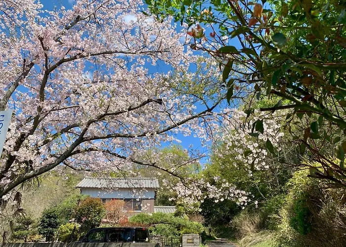 The villa is a property in Okayama, not far from Juzenjiyama. You can get to Byobu Island in a few minutes by car. The nearest airport is Takamatsu, 70 km from the lodge.